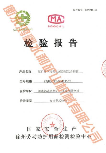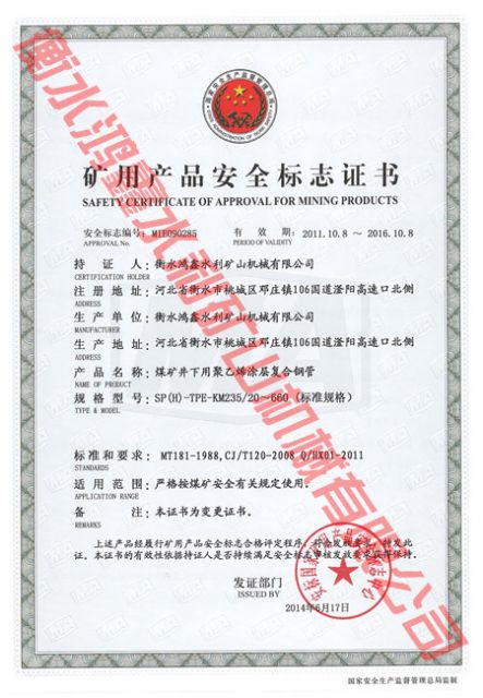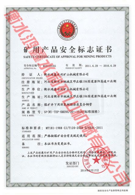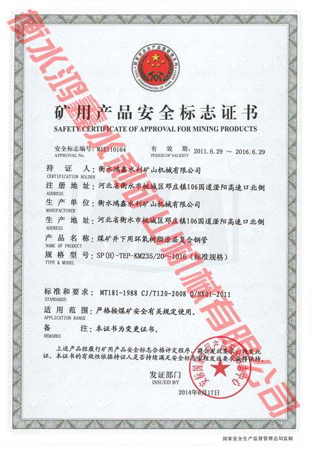矿用产品安全标志证书