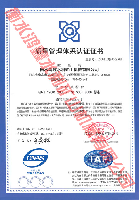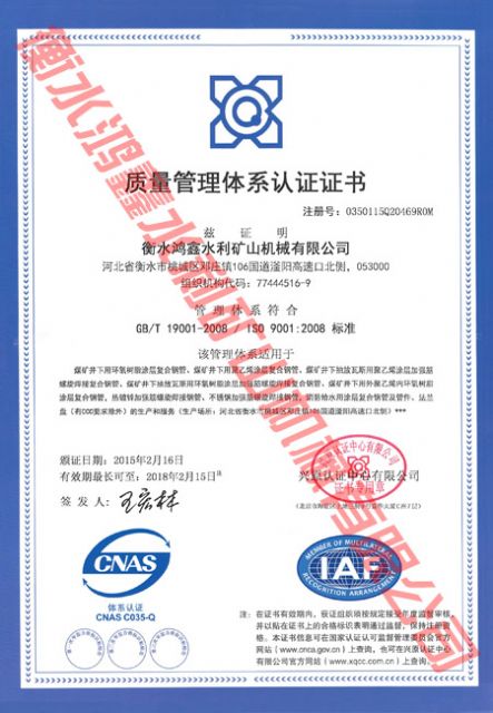 质量管理体系认证证书